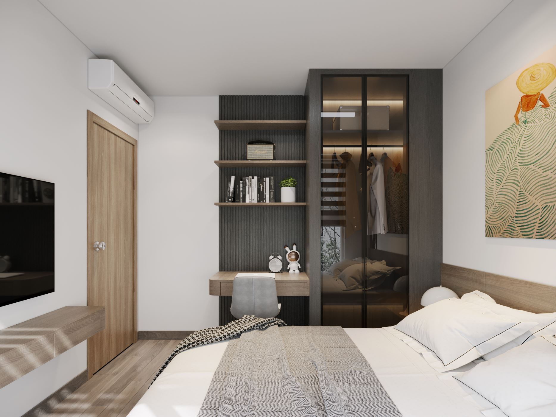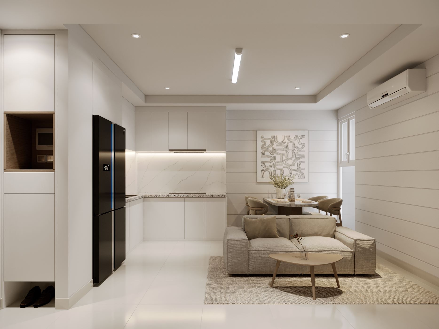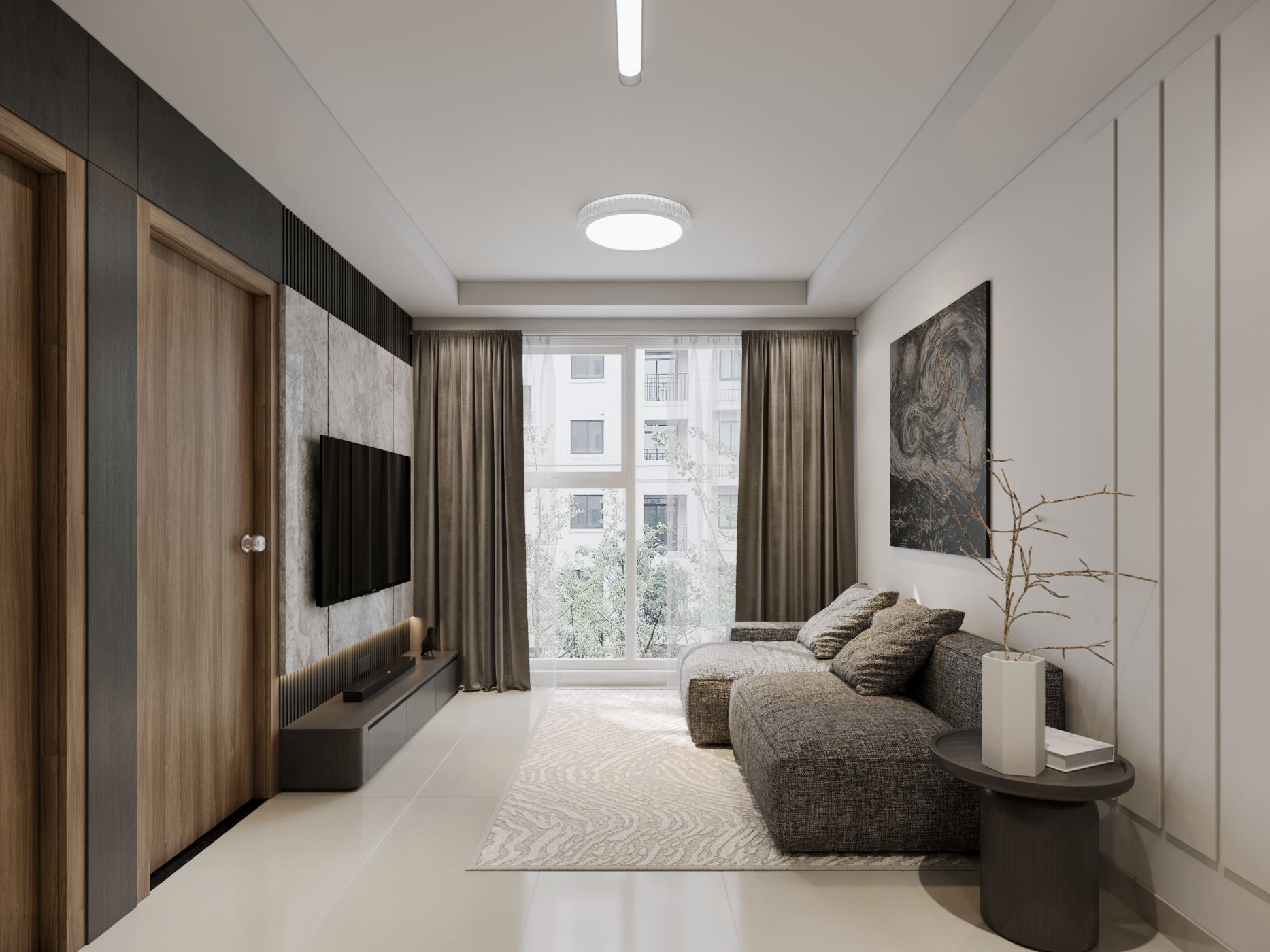 Một dự án căn hộ không quá cao cấp, loại 2 phòng ngủ và 3 phòng ngủ, diện tích không quá rộng nhưng vừa đủ công năng và tiện ích của 1 chung cư cao cấp, dự án nằm ở cửa ngỏ tỉnh Bình Dương giáp ranh với Tp. Hcm. Được chúng tôi thiết kế tối giản tạo nên một không gian rất thực, không cần cầu kì nhiều chi tiết, sử dụng những họa tiết thông thường nhưng bằng cách phối màu cũng như sử dụng vật liệu phù hợp đã tạo nên một căn hộ rất giản dị và hợp với xu hướng thị trường. Ưu việc của thiết kế này phù hợp với mọi lứa tuổi, căn 3 phòng ngủ phù hợp với gia đình có 2 thế hệ, căn 2 phòng ngủ phù hợp với các gia đình trẻ năng động. Mặc dù không gian không quá rộng nhưng bằng ý tưởng sắp xếp và linh động trong việc thiết kế tạo nên những không gian đầu đủ tiện nghi cho các gia chủ sử dụng một cách tiện ích nhất.