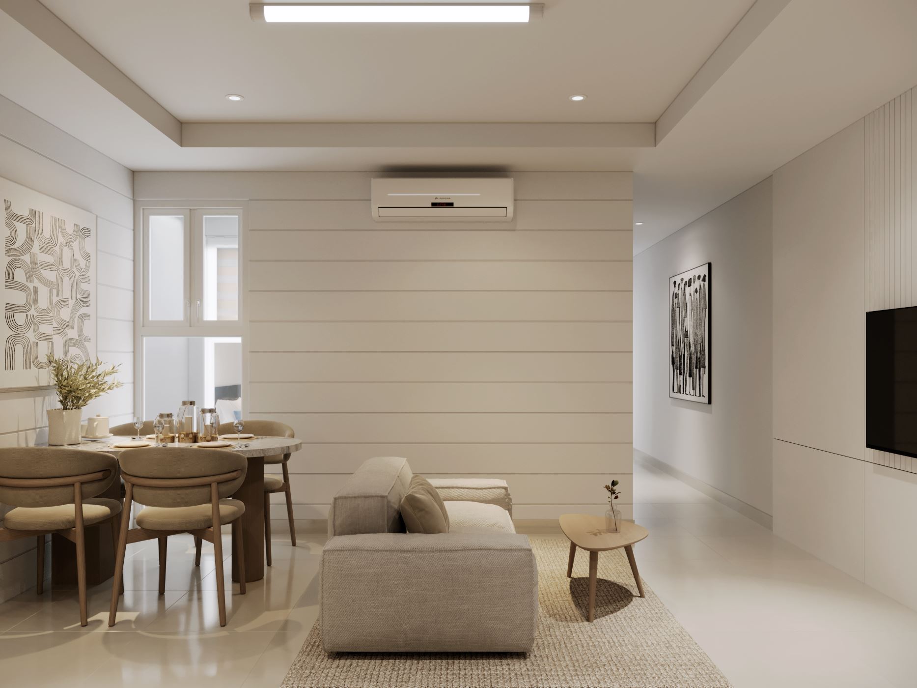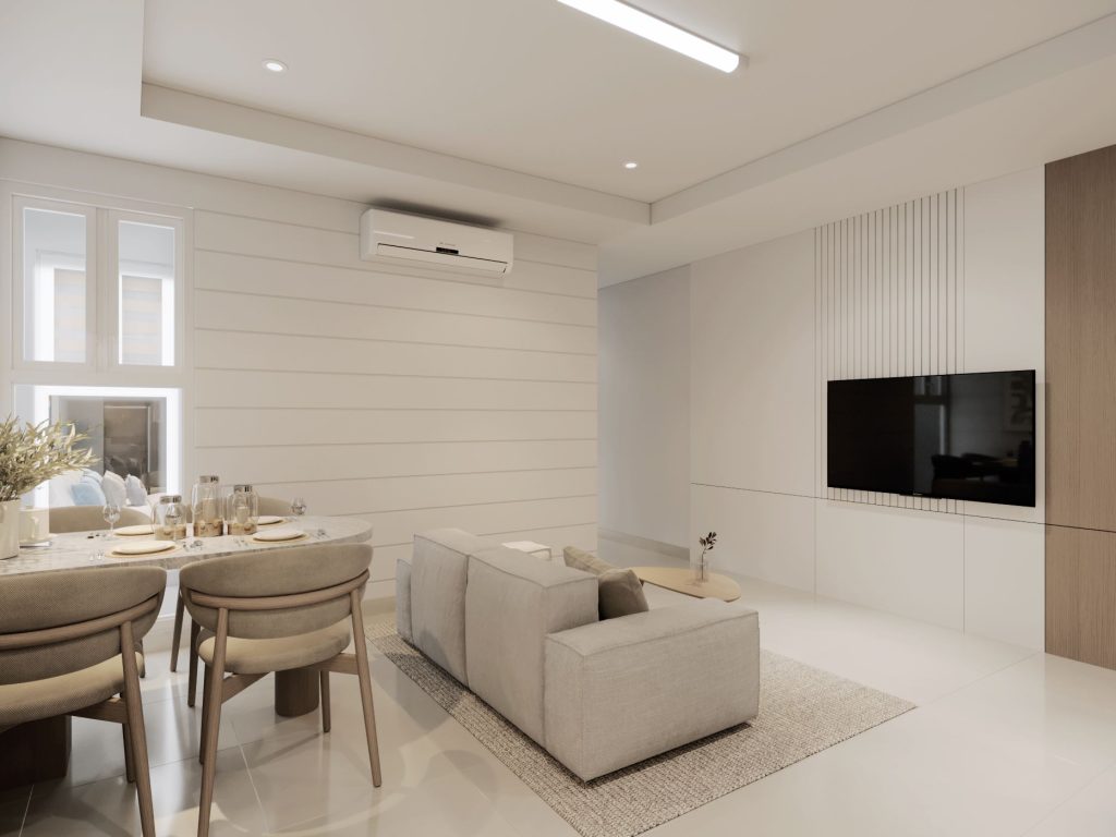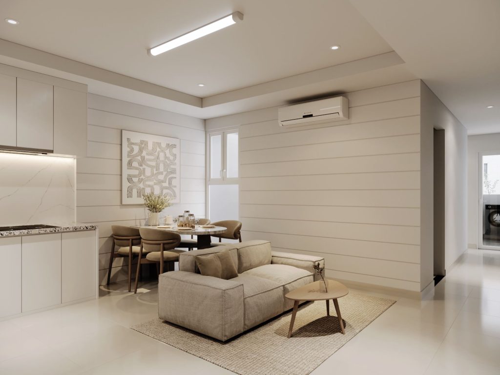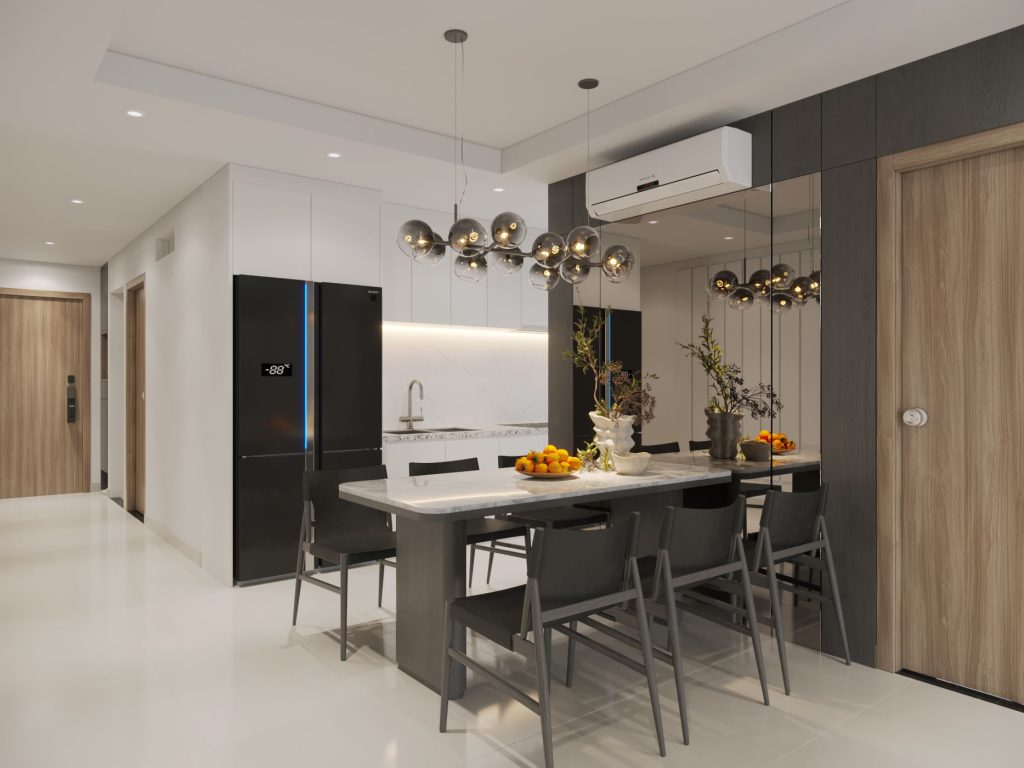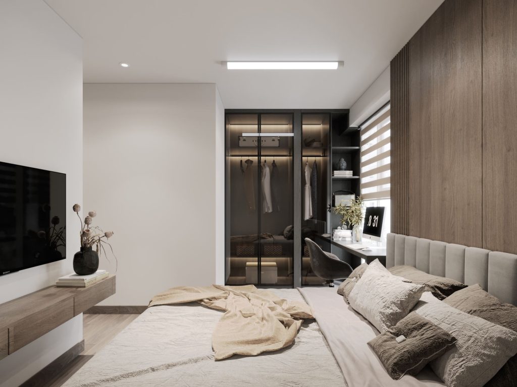 Một dự án căn hộ không quá cao cấp, loại 2 phòng ngủ và 3 phòng ngủ, diện tích không quá rộng nhưng vừa đủ công năng và tiện ích của 1 chung cư cao cấp, dự án nằm ở cửa ngỏ tỉnh Bình Dương giáp ranh với Tp. Hcm. Được chúng tôi thiết kế tối giản tạo nên một không gian rất thực, không cần cầu kì nhiều chi tiết, sử dụng những họa tiết thông thường nhưng bằng cách phối màu cũng như sử dụng vật liệu phù hợp đã tạo nên một căn hộ rất giản dị và hợp với xu hướng thị trường. Ưu việc của thiết kế này phù hợp với mọi lứa tuổi, căn 3 phòng ngủ phù hợp với gia đình có 2 thế hệ, căn 2 phòng ngủ phù hợp với các gia đình trẻ năng động. Mặc dù không gian không quá rộng nhưng bằng ý tưởng sắp xếp và linh động trong việc thiết kế tạo nên những không gian đầu đủ tiện nghi cho các gia chủ sử dụng một cách tiện ích nhất.