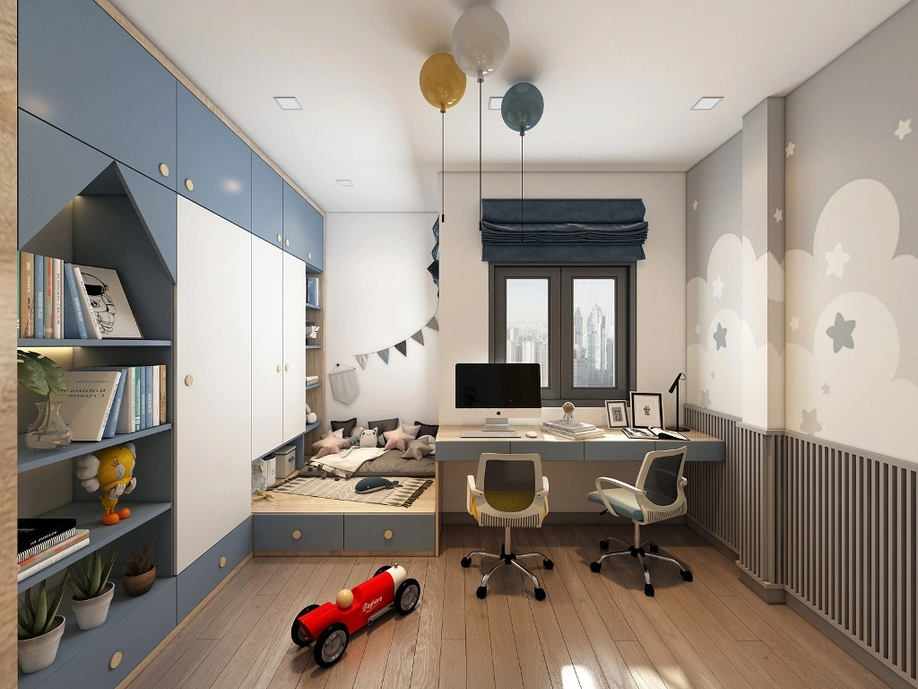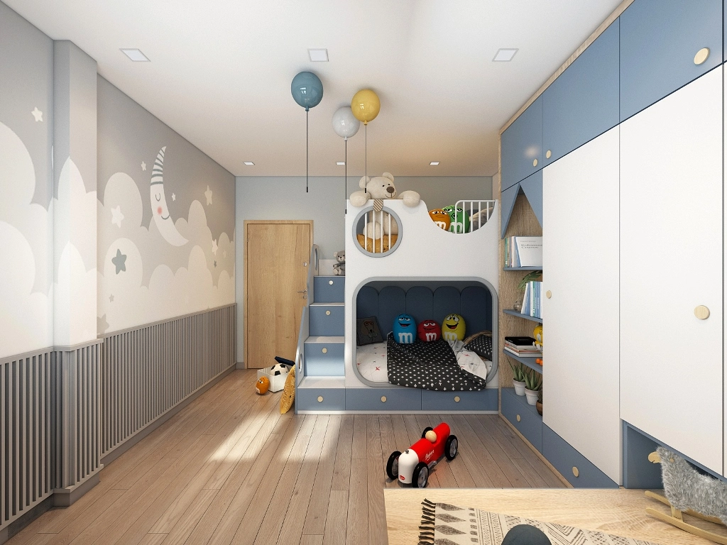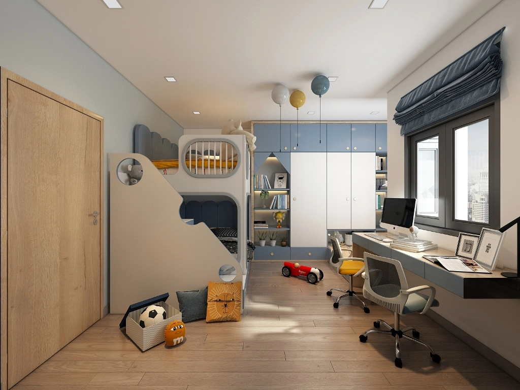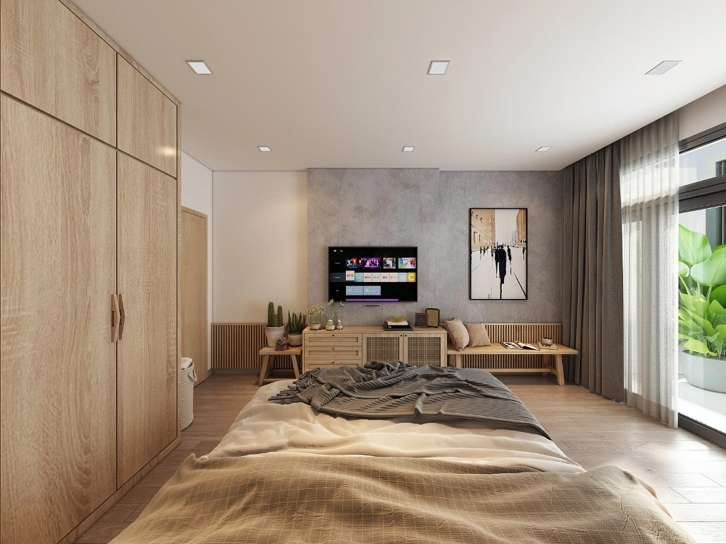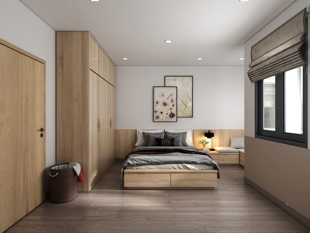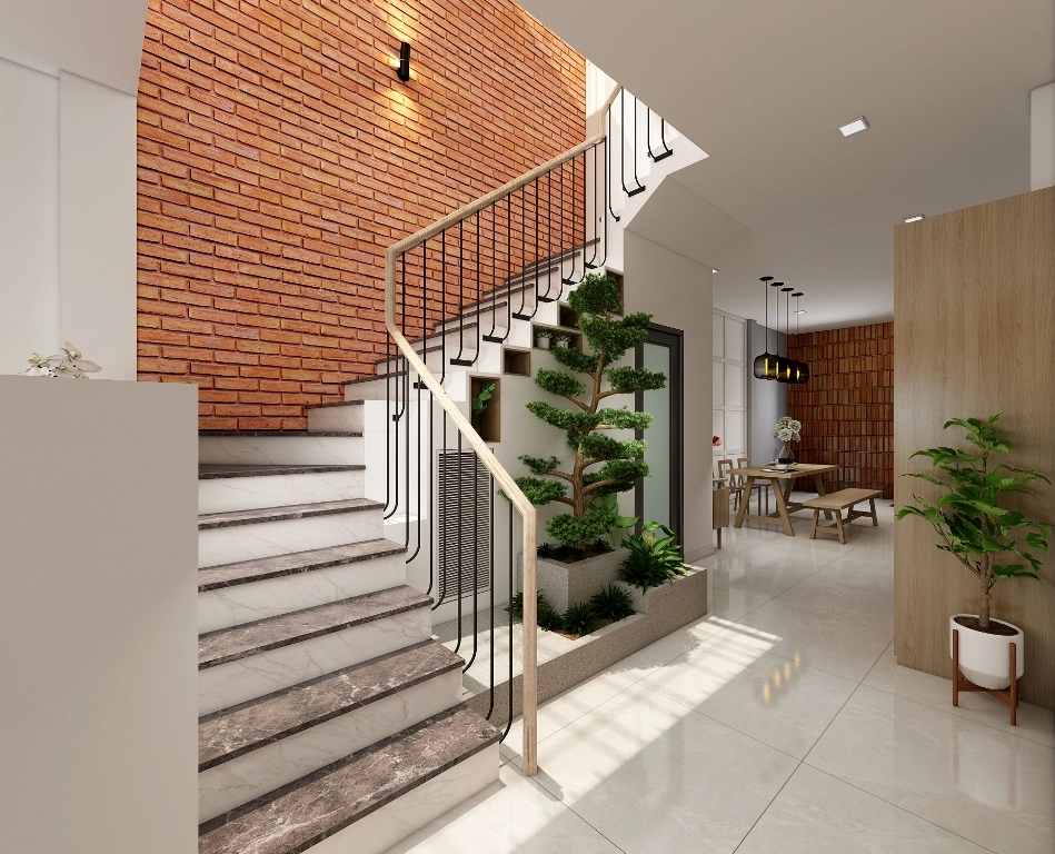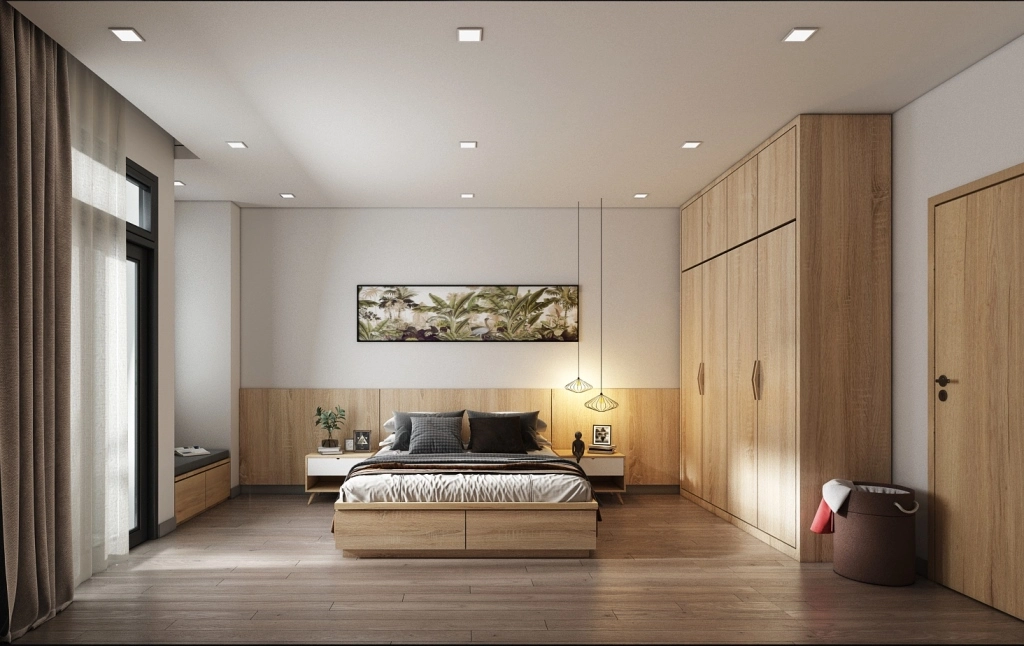 Một căn nhà phố tại một thành phố sầm uất nhất nước hiện nay. Tọa lạc ở vị trí gần các trung tâm thương mại, nơi mà thị trường đang phát triển vượt bậc ở TP. Hướng nhà chính rất nắng (hướng Tây) nên chúng tôi mang đến một kiểu dáng kiến trúc nhằm làm dịu đi sức nóng của tự nhiên. Tô điểm chính cho kiến trúc là các cánh cửa lam gió chống nắng, tạo thông thoáng, làm mát lại mặt tiền nhà. Bên cạnh đó kết hợp thêm màu sắc vật liệu (màu sáng, vật liệu chịu nóng) để làm giảm nhiệt độ về đêm cho căn nhà. Phong cách thiết kế nội thất bên trong căn nhà cũng là yếu tố được chúng tối chú ý và hướng đến để đêm lại sản phẩm tốt nhất cho gia chủ. Phong cách thiết kế rất mộc và tối giản, màu sắc phù hợp với các độ tuổi thành viên trong gia đình. Nổi bậc nhất là các thiết kế cho các phòng trẻ em. Một phòng ngủ kết hợp phòng học, vui chơi gói gọn trong một không gian nhỏ nhưng đầy đủ tiện nghi.