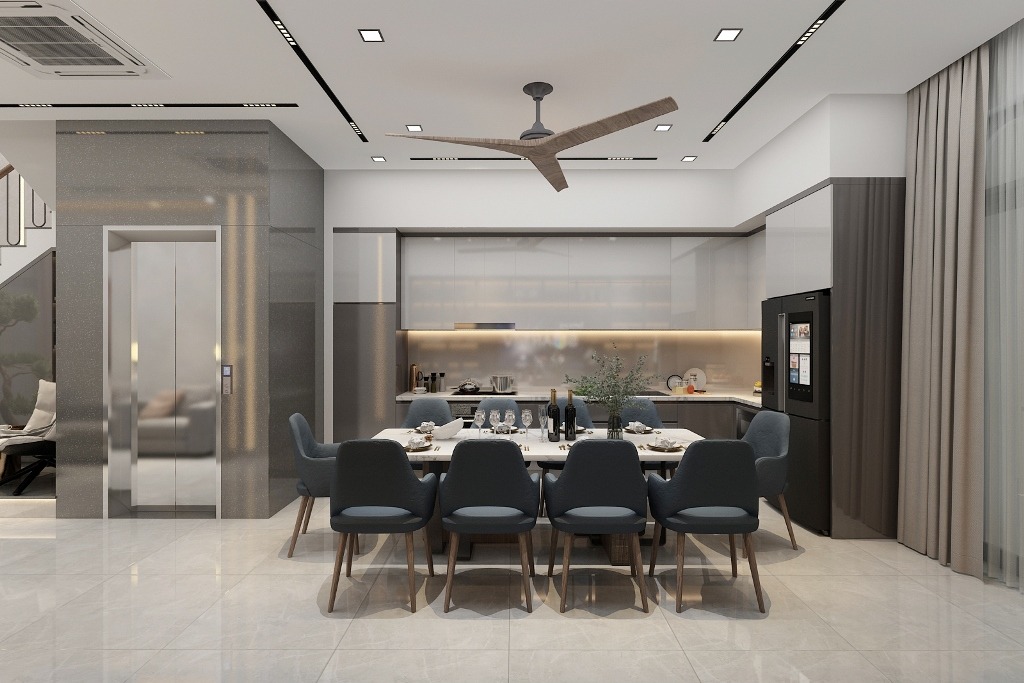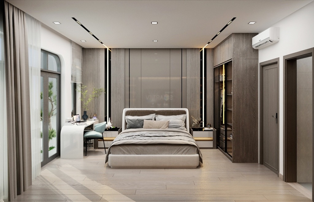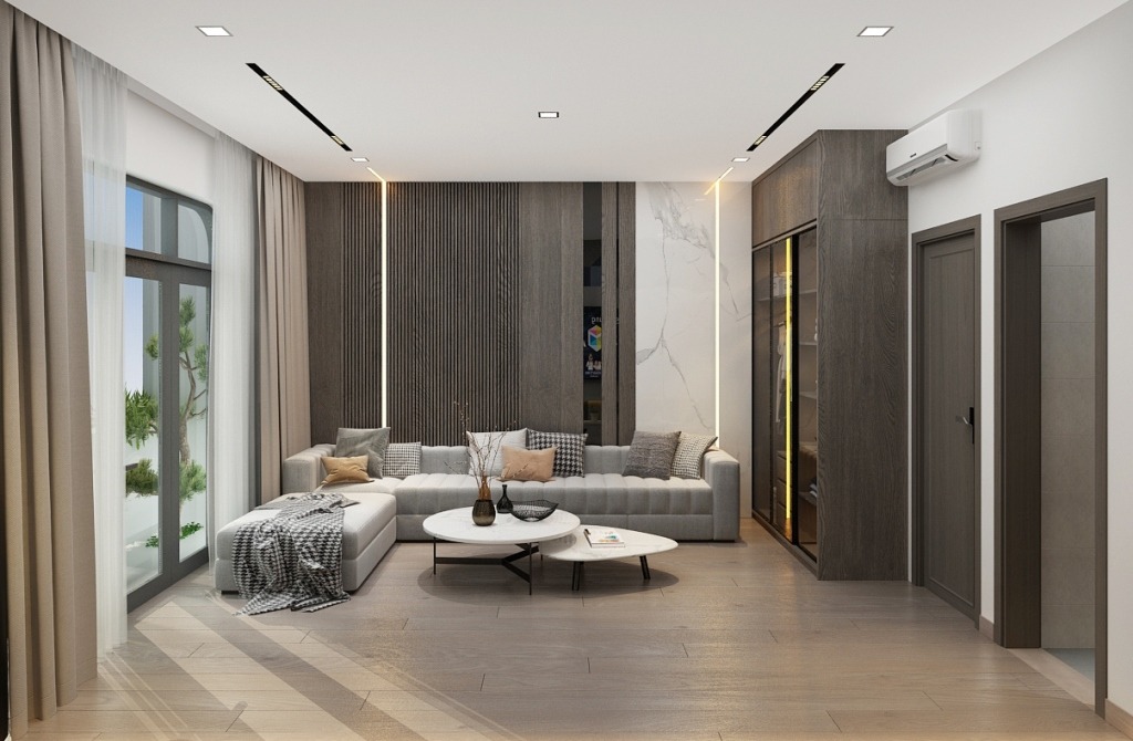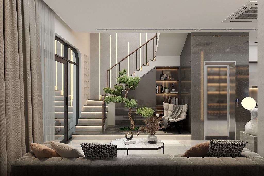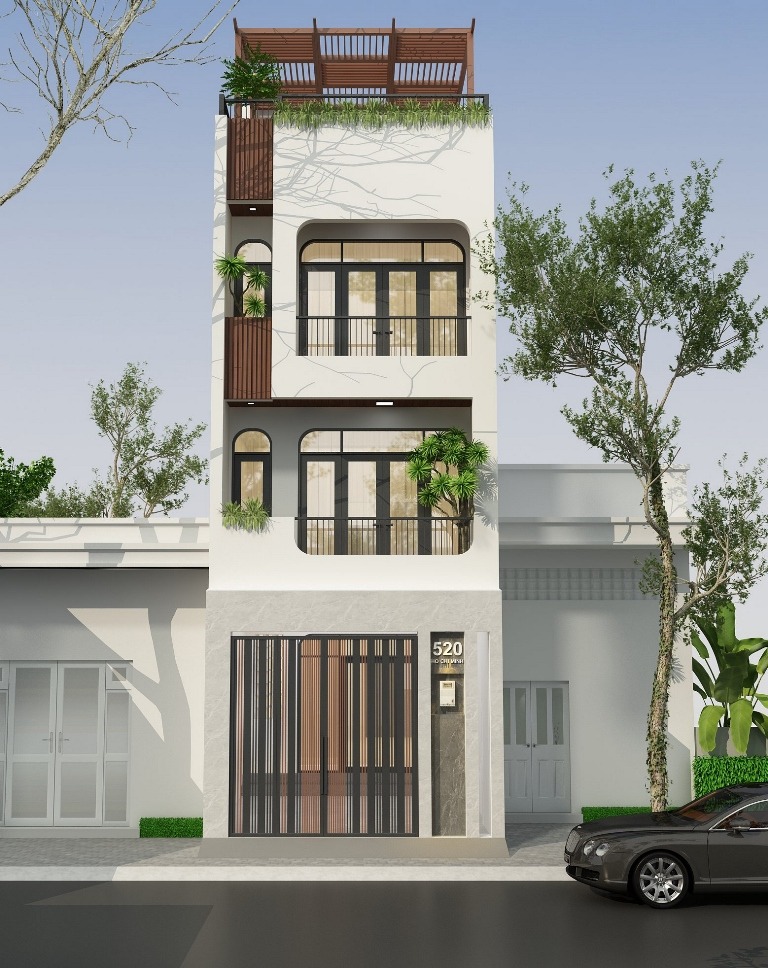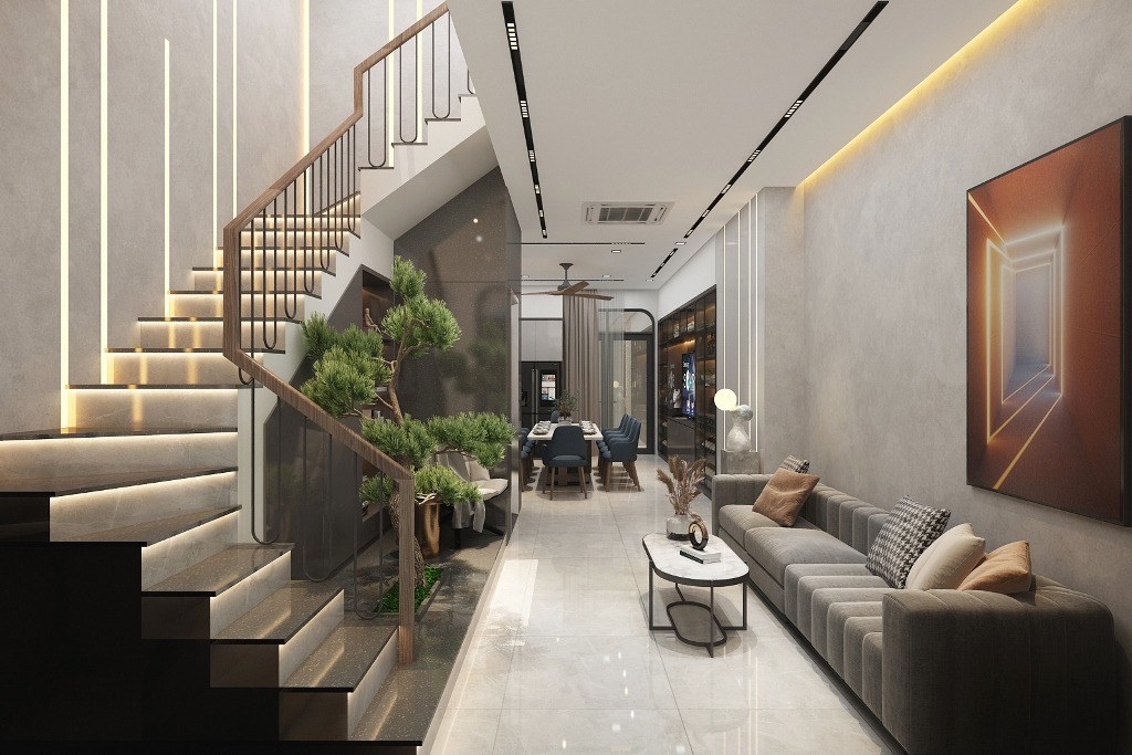 Một dự án nhà phố riêng lẻ, nằm ở trung tâm của quận Bình Tân hiện nay. Tọa lạc ở vị trí gần các trung tâm thương mại, nơi mà thị trường đang phát triển vượt bậc ở TP. Mang phong cách kiến trúc tối giản, chúng tôi đã lượt bỏ đi các chi tiết củ kỹ rườm rà của lối kiến trúc cũ, tô vẻ lên nét đẹp tươi mới của phong cách kiến trúc thời hiện đại nhưng vẫn giữ được nét đẹp riêng của hình khối kiến trúc bên cạnh những đường nét cong mềm mại làm nên kiến trúc hiền hòa dịu mắt. Phần kiến trúc nội thất bên trong rất mộc và tinh khôi. Điểm mới mẻ của các vật dụng và công năng bên trong là tách biệt được khu vực wc ra khỏi phòng ngủ, phân khu vực rất rõ ràng và riêng biệt. Nét đẹp chính của phần kiến trúc chính là sự kết hợp hài hòa giữa vật liệu bóng phản chiếu đi chung với vật liệu mờ, cộng hưởng thêm hiệu ứng ánh sáng đã tạo nên được các không gian rất riêng và rất đặc trưng. Ngôi nhà trở nên ấm cúng và gần gửi, mang đến sự hài lòng, ưng ý cho gia chủ và các thành viên trong gia đình.