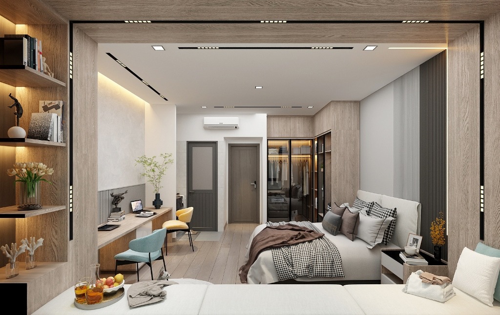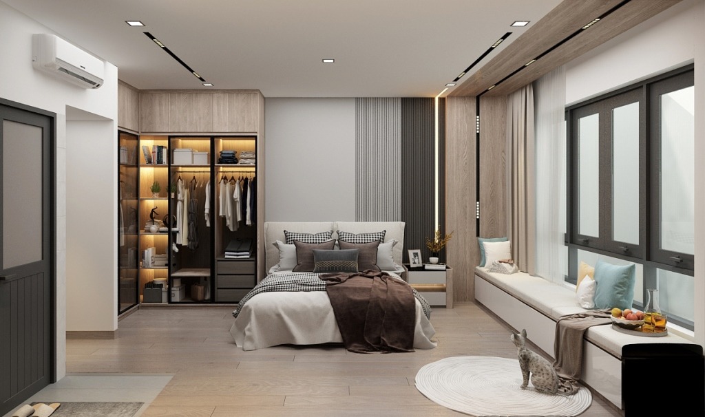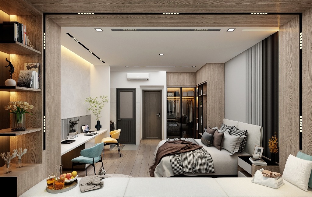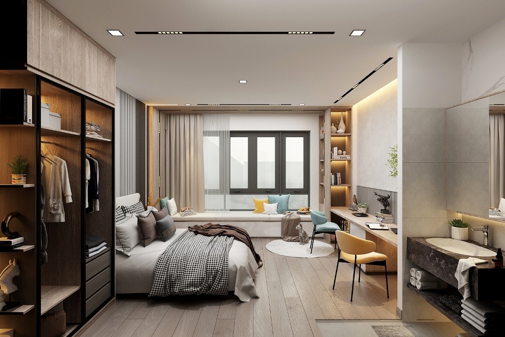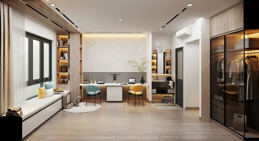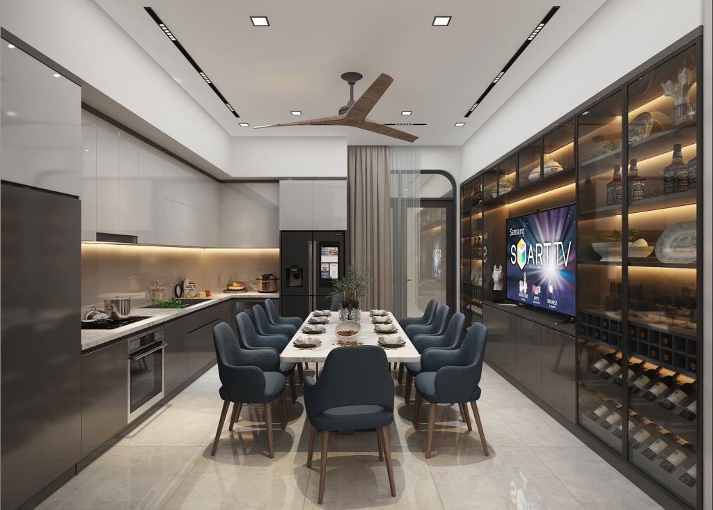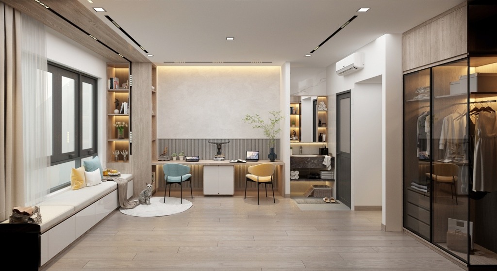 Một dự án nhà phố riêng lẻ, nằm ở trung tâm của quận Bình Tân hiện nay. Tọa lạc ở vị trí gần các trung tâm thương mại, nơi mà thị trường đang phát triển vượt bậc ở TP. Mang phong cách kiến trúc tối giản, chúng tôi đã lượt bỏ đi các chi tiết củ kỹ rườm rà của lối kiến trúc cũ, tô vẻ lên nét đẹp tươi mới của phong cách kiến trúc thời hiện đại nhưng vẫn giữ được nét đẹp riêng của hình khối kiến trúc bên cạnh những đường nét cong mềm mại làm nên kiến trúc hiền hòa dịu mắt. Phần kiến trúc nội thất bên trong rất mộc và tinh khôi. Điểm mới mẻ của các vật dụng và công năng bên trong là tách biệt được khu vực wc ra khỏi phòng ngủ, phân khu vực rất rõ ràng và riêng biệt. Nét đẹp chính của phần kiến trúc chính là sự kết hợp hài hòa giữa vật liệu bóng phản chiếu đi chung với vật liệu mờ, cộng hưởng thêm hiệu ứng ánh sáng đã tạo nên được các không gian rất riêng và rất đặc trưng. Ngôi nhà trở nên ấm cúng và gần gửi, mang đến sự hài lòng, ưng ý cho gia chủ và các thành viên trong gia đình.