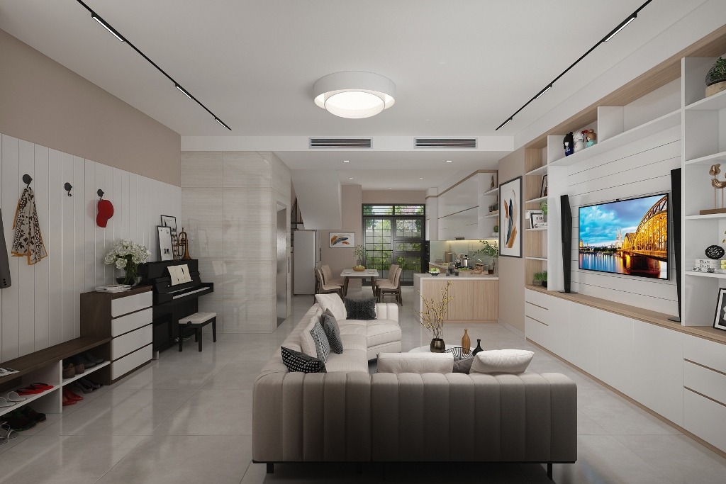 Một căn nhà phố rất thường, một kiến trúc cũng rất thường, không có phá cách cũng không hoa mỹ trong thiết kế kiến trúc. Thoạt nhìn rất đổi thường nhật, toàn là vật dụng đầy ấp trong nhà. Vật liệu và màu sắc cũng không có gì nổi bật nếu thoáng nhìn lướt qua. Sâu bên trong nó là cả một sự suy nghỉ chi li, tỉ mỹ, sắp xếp rất khoa học và đầy đủ những mục đích cần có của gia chủ. Mang đậm tính chất sử dụng hiệu quả và đáp ứng được những điều cần thiết của gia chủ. Từ tầng trệt cho đến lầu 1, lầu 2, lầu 3 và cả tầng sân thượng đều rất thực tế và linh động. Một thiết kế rất đổi lạ thường nhưng mang đến sự hài lòng và vừa ý cho gia chủ. Đây cũng là một sản phẩm riêng và cũng có thành công riêng của dự án nói chung và nhà cửa nói riêng.