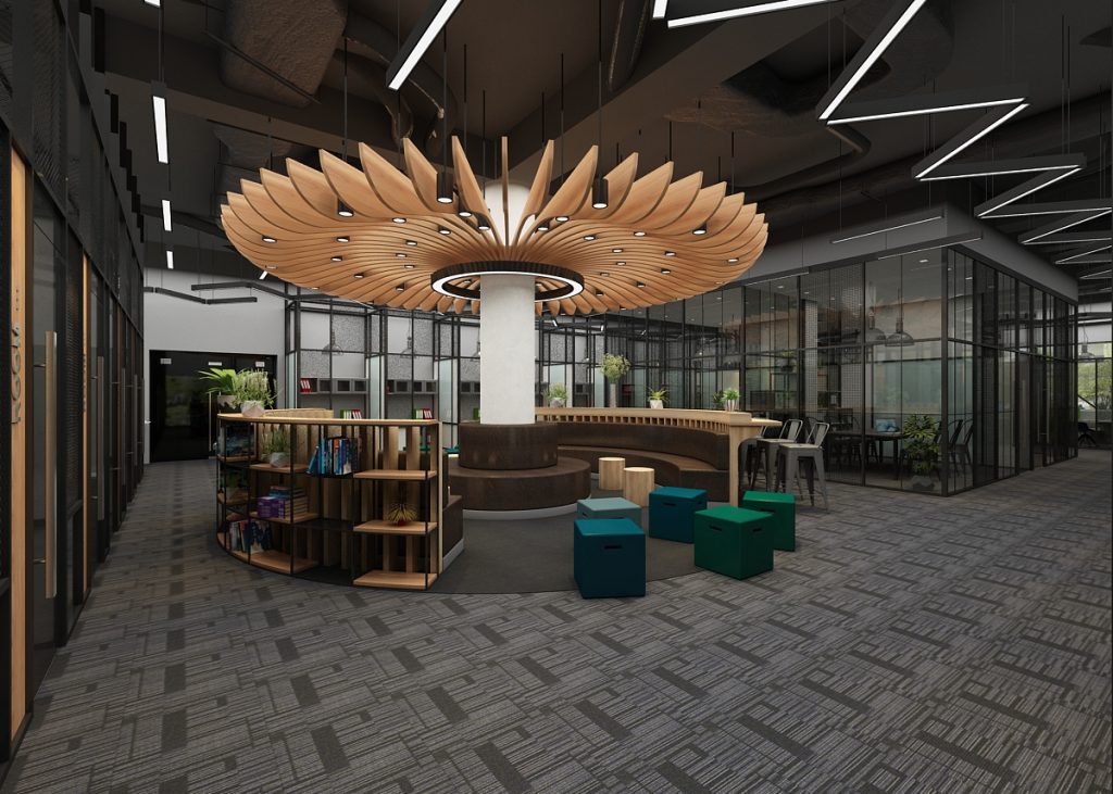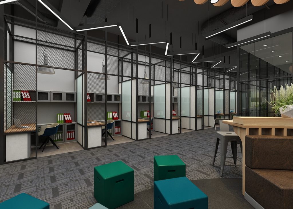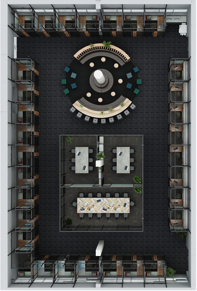 Một không gian office làm việc đủ hiện đại về mặt công năng để phục vụ cho phòng giảng viên của 1 trường đại học quốc tế (phòng giảng viên – soạn giáo án giảng dạy và đề tài thạc sĩ, tiến sĩ) Với công năng office làm việc dành riêng cho các giảng viên của 1 trường đại học quốc tế, mang phong cách thiết kế hiện đại đặc sắc vừa riêng tư vừa có không gian chung một không gian mở bên cạnh các phòng họp đa năng dùng cho mục đích thảo luận chuyên sau về các đề án cũng như chương trình phát triển định hướng giáo dục nhưng vẫn mang tính riêng biệt, thiết kế trang trí rất đơn giản và đầy đủ tiện nghi. Khu vực làm việc riêng tư từng phòng cho các giảng viên nhằm nâng cao tính tập trung chuyên môn và tư duy phát triển đề tài cho các giảng viên. Một nét riêng và cũng là điểm nhấn nổi bậc nhất của không gian chung chính là khuc vực không gian mở dành cho việc đọc sách, thảo luận đề tài nghiên cứu và trao đổi kiến thức của các giảng viên.