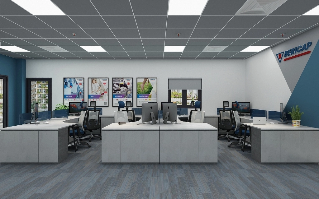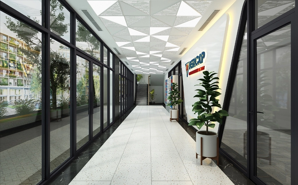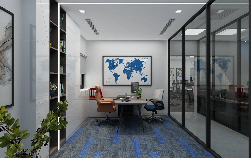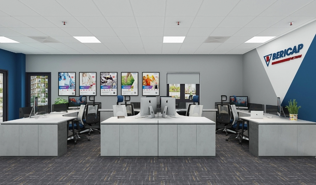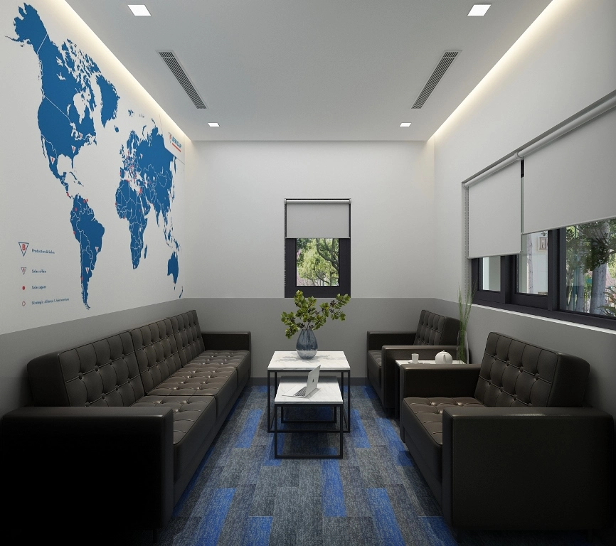Một văn phòng không gian kín truyền thống nhưng lại mang vẽ đẹp hiện đại để phù hợp với phong cách của một doanh nghiệp nước ngoài (tập đoàn công ty đến từ Đức) chuyên về ngành nhựa, sản phẩm chính là hàng tiêu dùng trên toàn cầu.