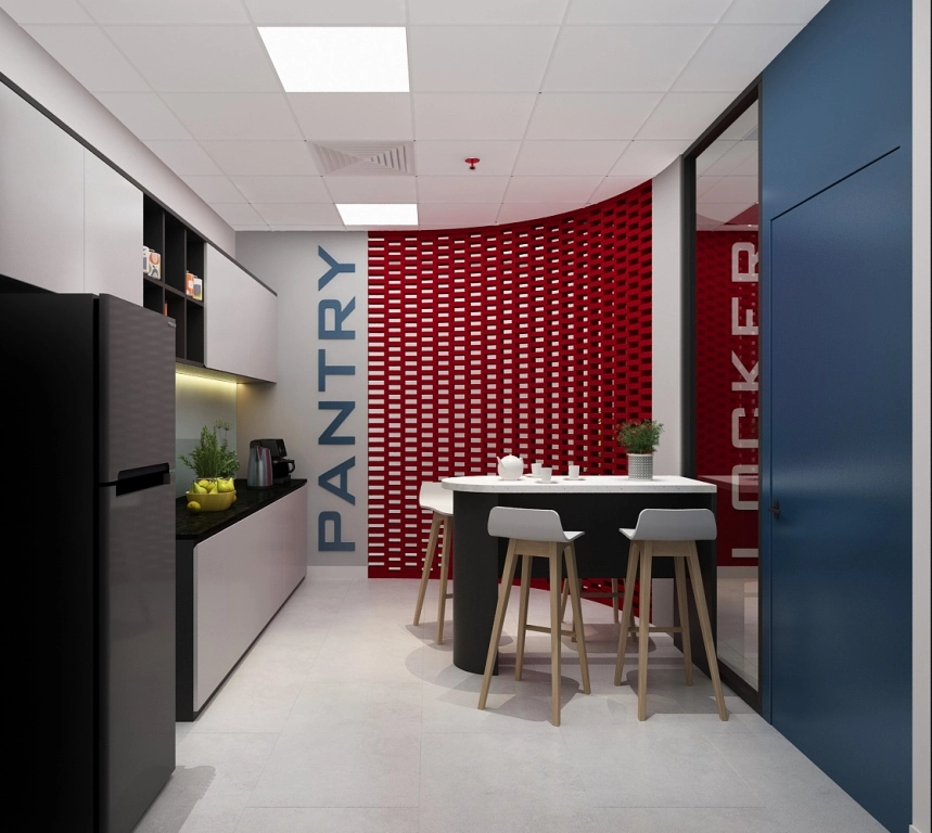 Phong cách thiết kế chính dựa theo tiêu chuẩn màu sắc văn hóa của công ty quy định nhưng hình dáng và không gian làm việc mang một nét đẹp thiết kế rất riêng và mang đậm nét văn hóa đặc sắc của cty. Tất cả các không gian có sự liên kết hài hòa từ không gian chung cho đến không gian riêng. Tạo nên không gian làm việc rất thoải mái, lôi cuốn và đầy năng lượng, loại bỏ đi những cảm giác mệt mỏi và nhàm chán của một office.